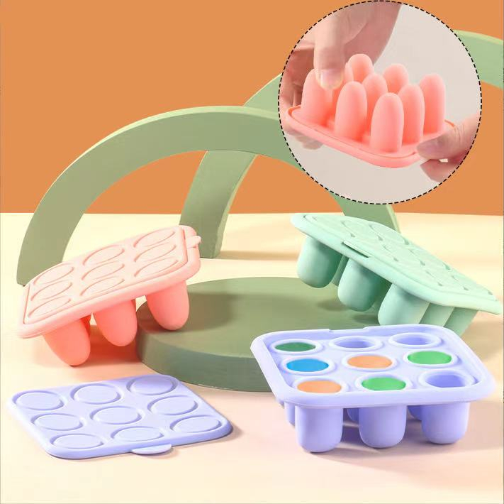 The food-grade silicone baby teething ice cube toy combines teething relief and food storage in one. Made from FDA-certified food-grade silicone, it is safe, odorless, soft, and chew-resistant. It can make frozen fruit puree and breast milk cubes, provide cold compression to relieve teething discomfort, and also serve as a teething toy to exercise chewing skills. It comes with a sealed storage box, is easy to clean, can be boiled for sterilization, and is suitable for babies aged 3-24 months. Suitable for both home and travel use, it is an essential item for new parents during the teething period.
